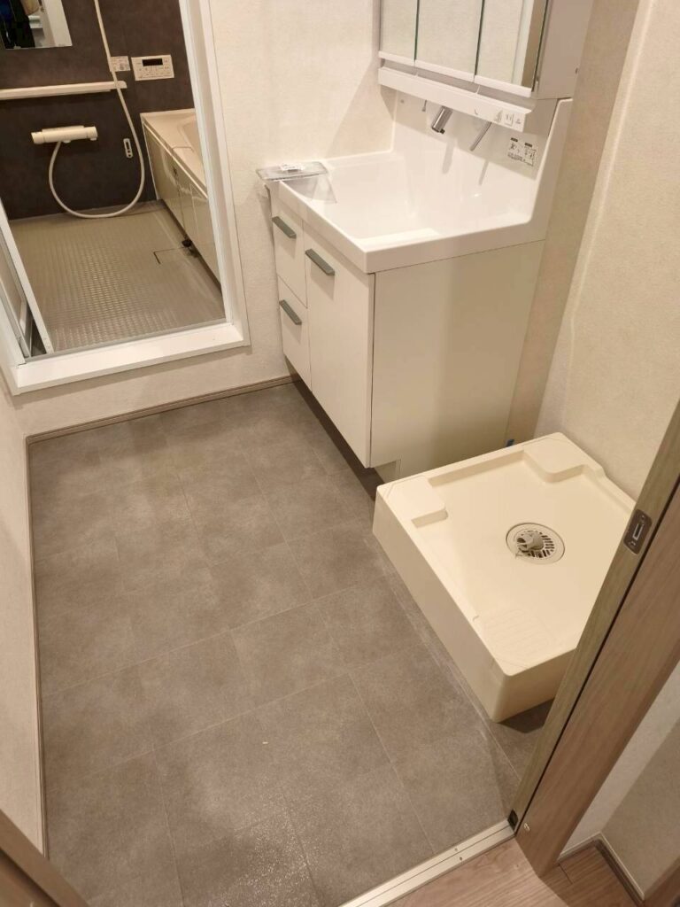 ■洗濯機置場■ 洗面所内に洗濯機が置けるスペースあり。防水パン設置済。