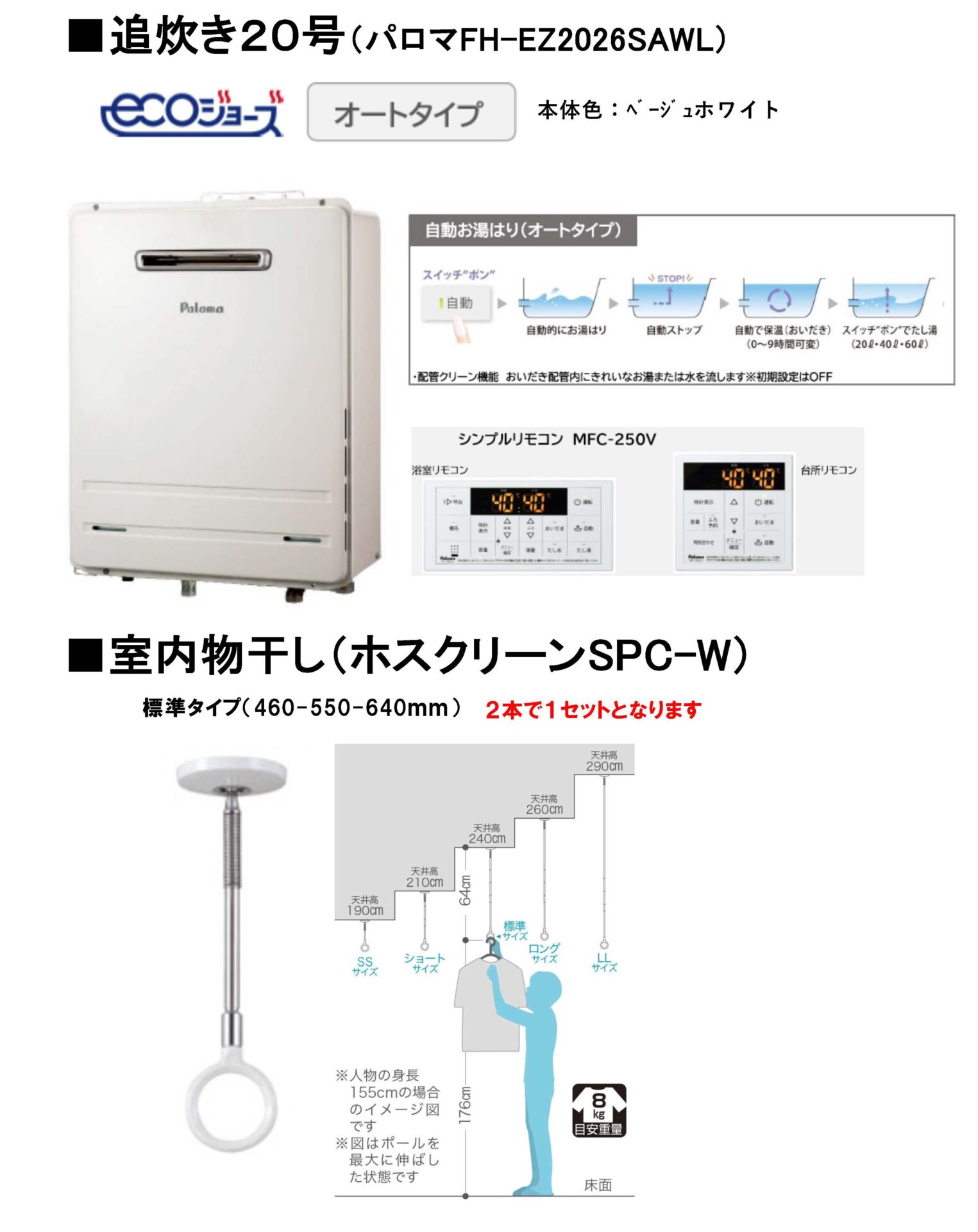 | 給湯器 | 追い焚き機能付き給湯器(20号)エコジョーズなのでガス代がお得です。 お風呂&キッチン混合水栓用 キッチンにサブパネル(スイッチ)あり |