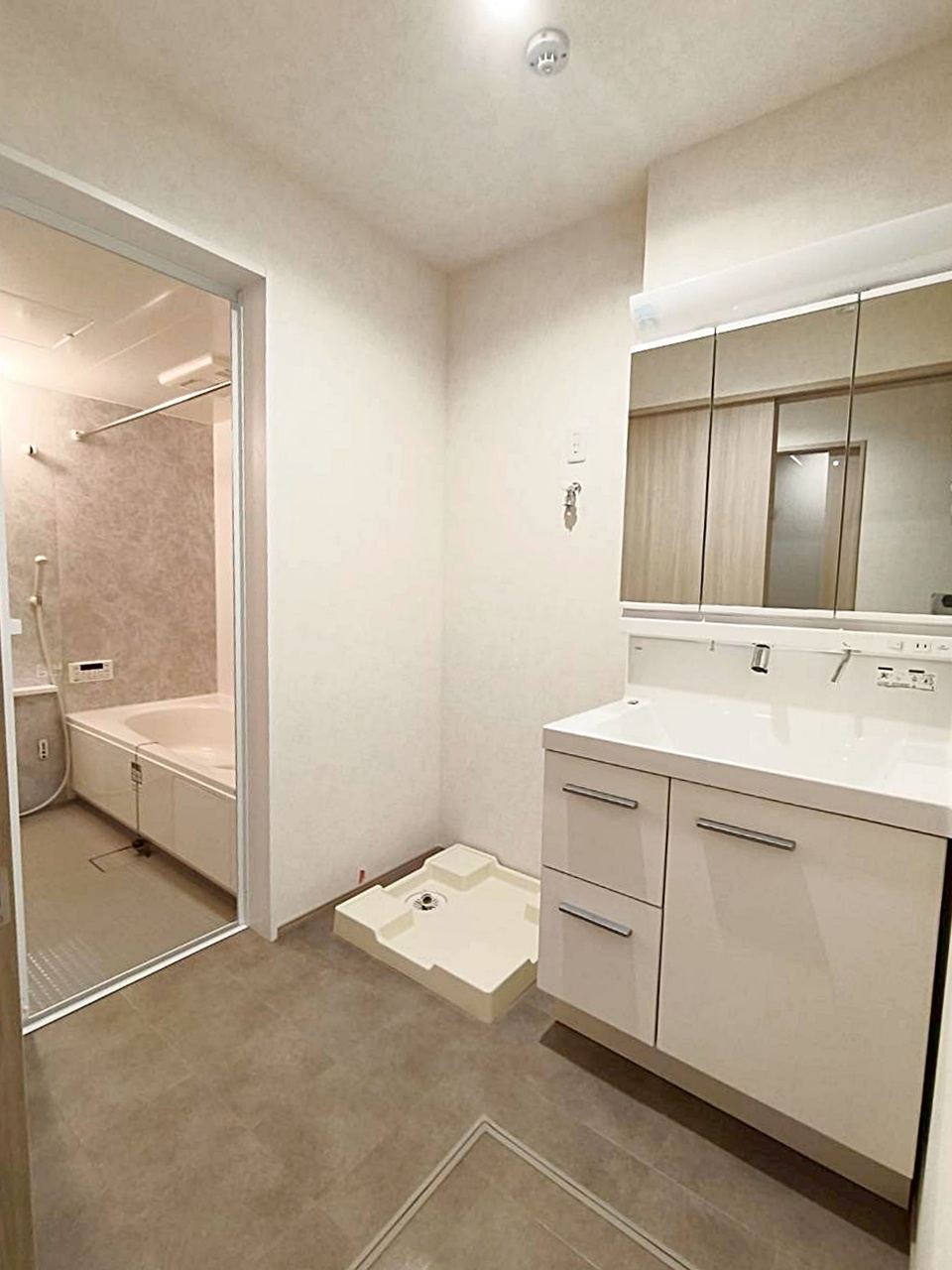 | 洗面 トイレ | ■ 清潔感のある毎日へ 三面鏡独立洗面台(曇り止め・照明付き) 洗面所独立 シャワー付洗面化粧台 トイレ 温水洗浄便座付き 室内洗濯機置場(防水パン設置済) 手洗い付き温水洗浄便座 |