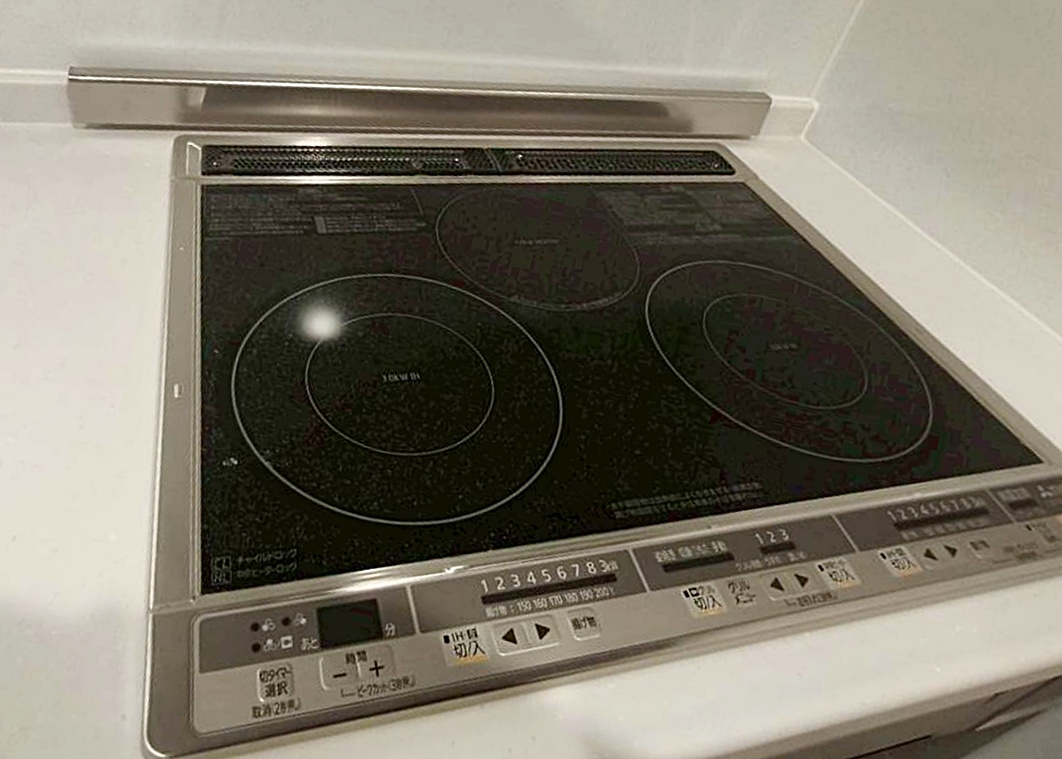 ■コンロ■ IH 2口+ラジエントの3口コンロ 両面焼きグリル付き。