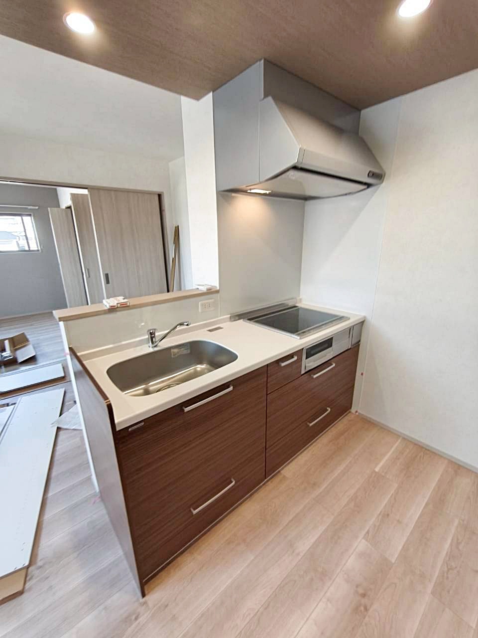 | キッチン | ■ キッチン – 料理のしやすさを追求した設備 システムキッチン キッチンワークトップ(天板):人造大理石のシステムキッチン キッチンの設置方向はお部屋ごとに違います。 ▷101/102/104/201/202/204/301/302/304号室 = 対面式キッチン(おしゃれな木目調の下がり天井) ▷103/203/303号室 = 壁付タイプ+吊戸棚キッチン(収納多め広々空間採用) IH 2口+ラジエントヒーターの 3口コンロ 魚焼き両面焼きグリル搭載 シングルレバー混合水栓 レンジフード 料理好きな方にも満足いただける本格仕様です。 |
